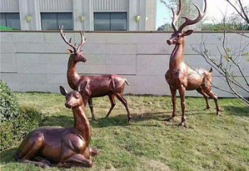 仿銅雕梅花鹿玻璃鋼戶外公園雕塑