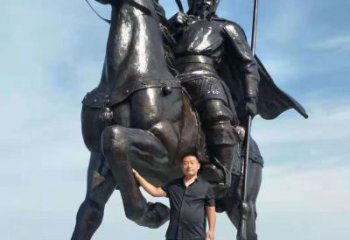 傳統(tǒng)工藝銅雕騎馬人物雕塑,點綴戶外園林