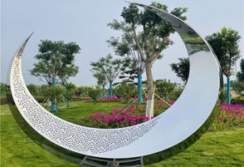 不銹鋼鐵藝月亮抽象水景擺件