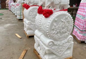精美漢白玉大型浮雕抱鼓雕塑