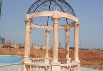 美麗而典雅的歐式大理石雕塑涼亭,為觀賞晚霞景觀而設(shè)計(jì)