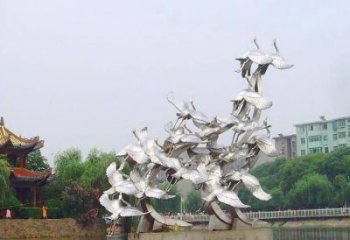 不銹鋼仙鶴群水景裝飾景觀雕塑