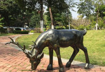 精美鹿雕塑,在公園里覓食的活力象征