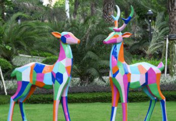 玻璃鋼幾何雕鹿裝飾品——景觀戶外裝飾彩繪公園藝術(shù)品