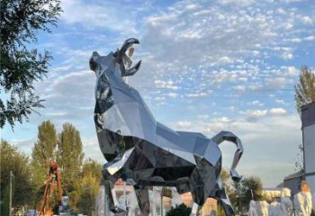 大型不銹鋼牛雕塑,拋光切面