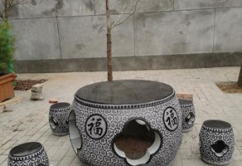 大理石浮雕鼓形圓桌圓凳