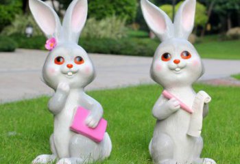 灰色玻璃鋼兔子雕塑圖書館