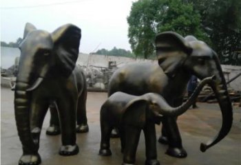 不銹鋼仿銅大象雕塑,為戶外草坪增添一家四口的溫馨氛圍