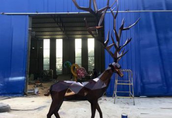 大型不銹鋼鏤空梅花鹿園林裝飾品