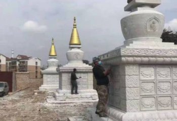 純銅舍利塔雕塑只是在望柱之間嵌上一整塊石雕欄板便算構(gòu)成,望柱頭多雕刻云紋,加工也比照簡潔。