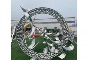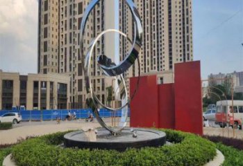 不銹鋼海豚景觀雕塑,提升酒店會所的抽象圓環(huán)氛圍