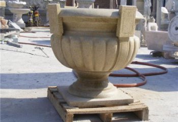 黃銹巖制作的歐式花缽擺件