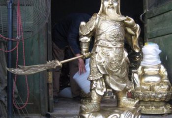 手工鑄銅噴金雕刻武財神關(guān)公雕塑