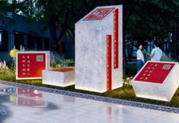 該景觀雕塑巧妙融合實用與文化傳承。采用石材打造坐凳,石材質(zhì)樸且富有質(zhì)感,契合景觀雕塑自然、沉穩(wěn)的氣質(zhì),既為人們提供休憩之處,又成為公共空間的藝術(shù)點綴。將 “禮”“讓”“義” 等代表中華傳統(tǒng)美德的文字,以發(fā)光形式呈現(xiàn)于石材坐凳之上,使坐凳不再只是簡單的休憩設(shè)施,更成為傳遞文化精神的載體。當(dāng)人們落座于這些帶有美德文字的坐凳,既能在舒適中感受景觀之美,又能潛移默化地接受傳統(tǒng)美德的熏陶,讓文化傳播與日常休憩場景有機結(jié)合,營造出富有詩意與人文關(guān)懷的公共空間氛圍。