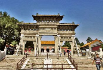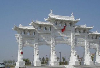 牌樓雕塑可以追溯到原始社會(huì)氏族聚居村落入口處的門型建筑。門柱花崗巖牌樓雕塑起源于佛教舍利塔前的石門甬道,在漢代稱為闕,六朝稱為標(biāo),唐代稱為烏頭門,宋代官名表楬、閥閱、烏頭門,俗名欞星門。簡(jiǎn)易牌樓雕塑非常簡(jiǎn)單,就是兩根立柱加上一塊橫木,兩扇對(duì)開木門,較多的注重作為大門的實(shí)用價(jià)值。